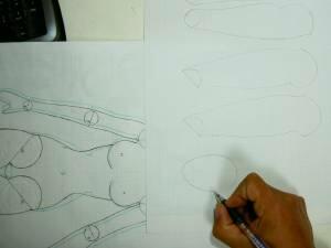なお前回のデッサン完成後、股の関節にさらに大きな球を使うことが可能