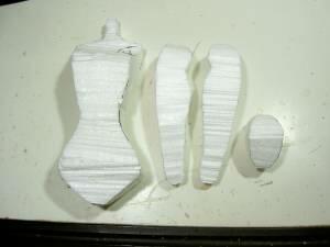14 胴、頭、太ももの部分は発砲スチロールで形ができ