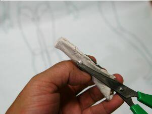 7 いらない部分をはさみで切ります。今回の加工は基