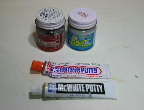今回の作業のために購入したもの:Mr.サーフェーサー(283円) Mr.ホワイトパテ(214円)