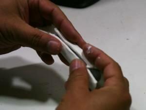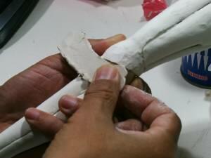 11 膝下の部分に柔らかくしたラドールを塗り、更に形を