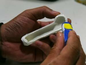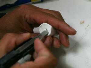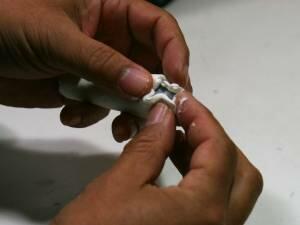 7 凸部分に先ほどの柔らかくしたラドールを塗ります。 |