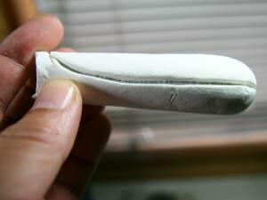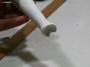 18 断面に軽くヤスリがけしたあと、接着剤を塗ります。 |