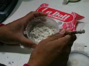1 ラドールを全体の1/4程度取り、水を加えて練りなお