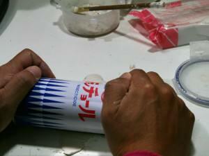 最後の穴あけは乾燥を促すためのものです。これをやらないと乾燥時間が2倍に延びてしまいます。