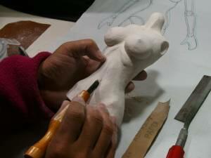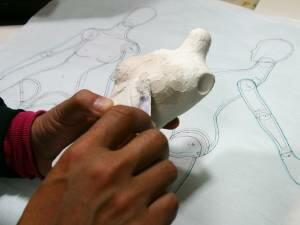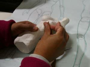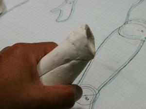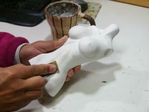 今回は前回完成させた内型に軽量石粉粘土をかぶせ、胴・頭・手足の基