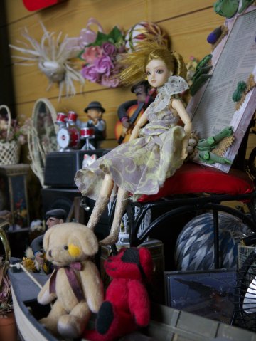 まるで雑貨店のような、自分の部屋の一角で3種類のカメラを使い、同じ風景を撮影してみます。ちなみに照明は昼光色の蛍光灯 80W と撮影用照明