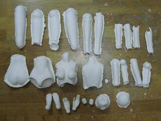 新しい球体関節人形の制作は予定通り進行中です。肘は二重関節に、膝には横回転をおさえる改良を加える計画です。完成は2月後半かな?