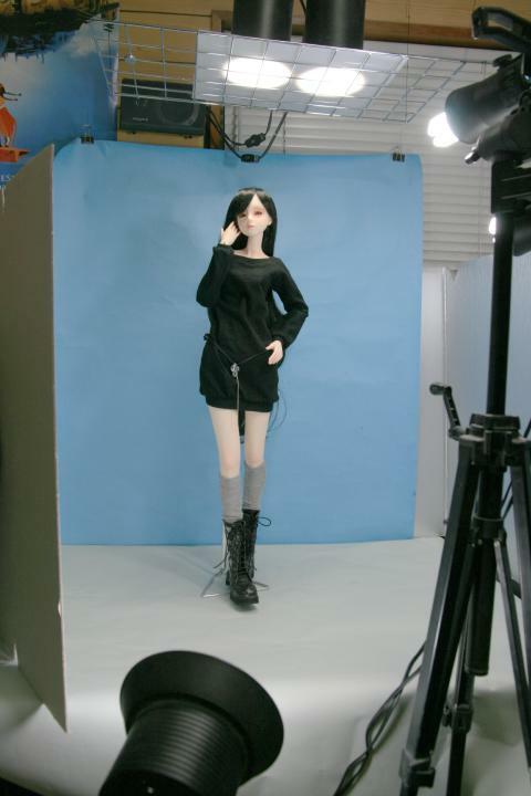 風景写真の光は右上方から、ただし薄曇りで日差しは強くありません。これを考慮して人形写真のライトを調整し、写真を合成します。