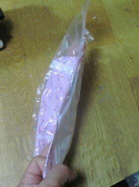 5 ちょっと袋のなかに空気が残ってしまいました。 6 こんなときには、袋のはじに小さな穴を開け・・・。