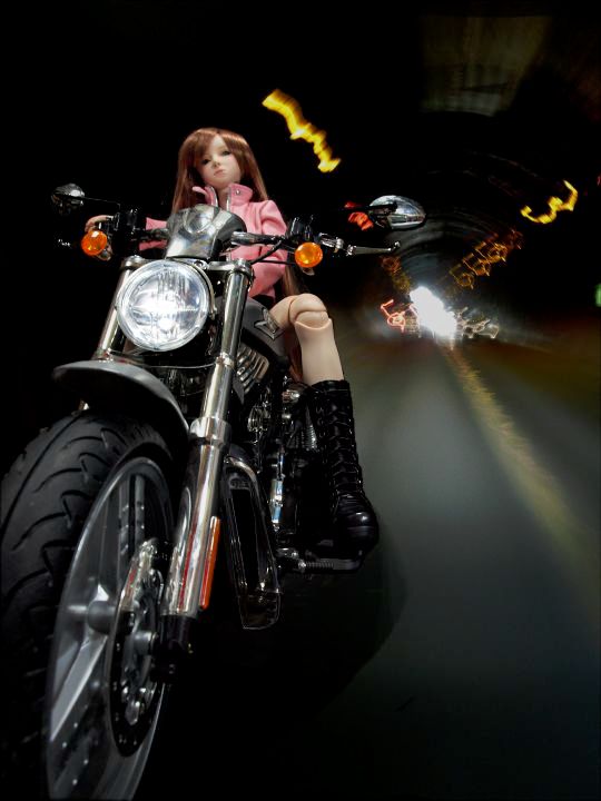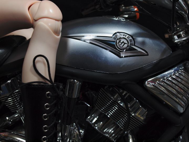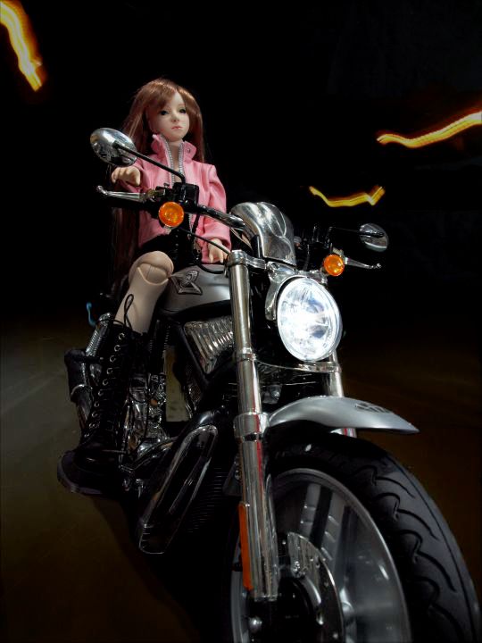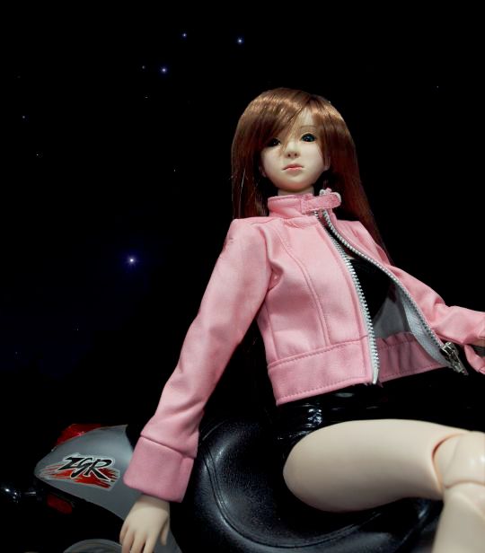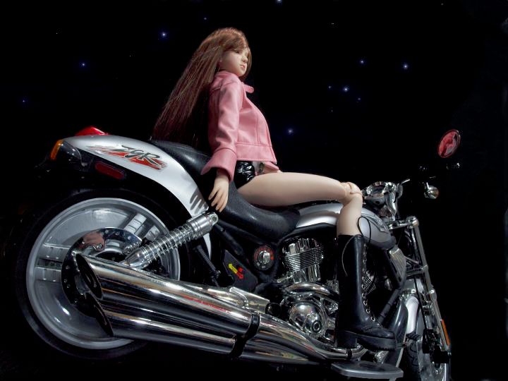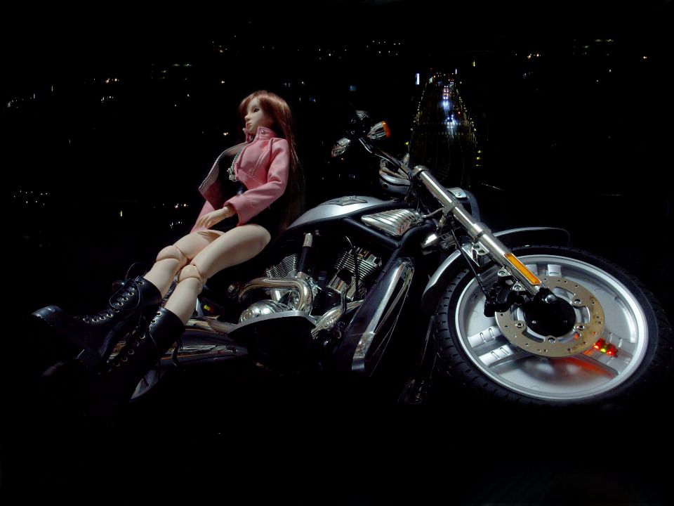 vmf50に限らず、オビツ製ボディをベースにしている人形はどれも首がやや長めなので、このDOLLも 6mm ほど切り詰めてあります。 洋服はディーラー製の市販品です。 バイクは5000円ぐらいで買った1/4スケールのラジコンです。実際に動きますが、人形を乗せ走らせて、撮影するのはさすがに無理。 画像をご覧になって、「ヘルメットをかぶっていない」とか「そもそもそんな格好でバイク乗らないでしょ」とかご意見はあるかと思いますが、 そこは雰囲気重視ということで・・・。 |