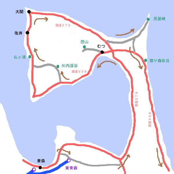 やっとまとめて取れたお盆のお休みは15日から4日間のみ。 さてどこに行こうか思案の後、ひさしぶりに青森県に行って みることにしました。今回は青森市街から下北半島を1周します。
