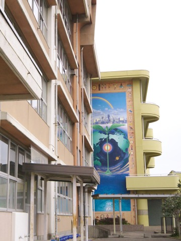 8:00 師走も後半、とっても寒い日に宇都宮郊外の徳次郎 という地区にやってきました。 ここ徳次郎は宇都宮から車で30分ほどのところにあ る小さな農村ですが、江戸時代には日光街道の宿場町 として栄え、また大谷石と同質の石がとれる産地として も有名であったそうです。 自家用車を市民センターに駐車させていただいて、 早速、散策を開始です。 すぐそばに富屋小学校があったのですが、校舎に描 かれた壁画が見事、できるなら中に入ってちゃんと見 たいな。 |