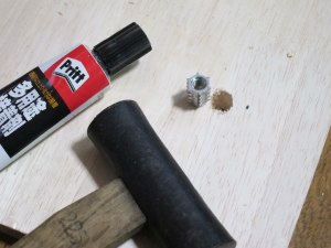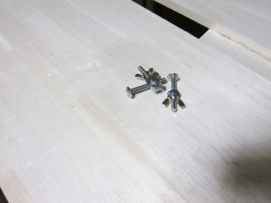 こまかな製作過程は次のとおりです。オオニメナットとハンガーボルトは ちょっと大きなDIYショップで入手することができます。それぞれ4個セット で400円ぐらいだったと思います。