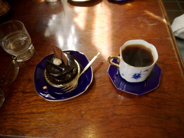 | ちょっとレトロなレストランのような店内。 中ではコーヒーなどの飲み物と一緒にケーキもいただ けます。 甘さを抑えた上品な味。またここのケーキはどれも見た 感じがとても綺麗、目でも楽しませてくれます。 ![]() |