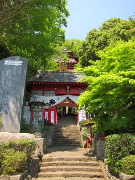 | こちらの神社は、明治12年に建てられ、地域振興と縁結 びの神様が祀られているとか。 参道がとってもきれい。 少し登ったところに境内があり、そこから南に向かって 関東平野が一望できます。 早朝に出てきたので、例によって誰も観光客はいませ ん。落ち着いて撮影もできます。 |