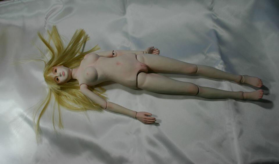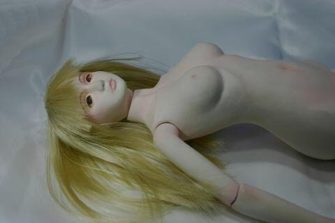球体関節人形としては2体目、肌の透きとおるような質感を出すために三層のコーティングを施しています。