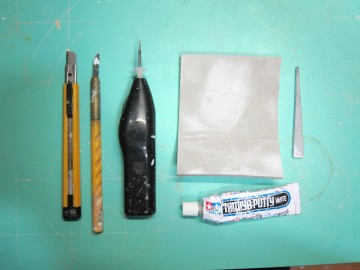 道具はカッター、ルーター、スポンジ&スティックやすり、パテなどです。ごくありふれた作業用具です。 ![]()