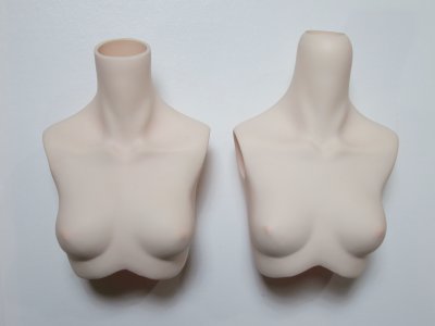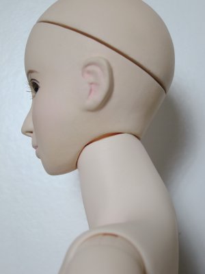 またドールアイはすきまパテで固定しているだけなので交換可能です10〜12mmのドールアイが装着可能です。 ![]() オビツ50 ボディはやや首が長めなので、ヘッドとのバランスをとるために首を約6mm、また首ジョイントも約5mmほど短く加工しています。 そのためヘッドとの接続部分に段差が生じています。