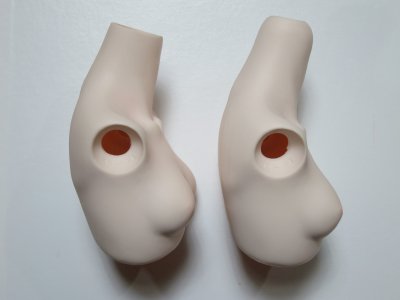 misaki HB01 ![]() ![]() ![]() ![]() 作品説明 ヘッドは ラドール・プレミックスを主材料にしたオリジナル作品で、独自の手法を取り入れて制作しています。 オビツ50の標準ヘッドよりはやや小さめです。 ウイッグは両面テープで固定しているだけなので交換可能です。6〜7インチサイズの市販ウイッグが使用できます。 ![]() ヘッドは2分割可能でネオジム磁石で密着するようになっています。