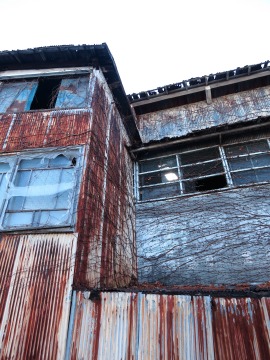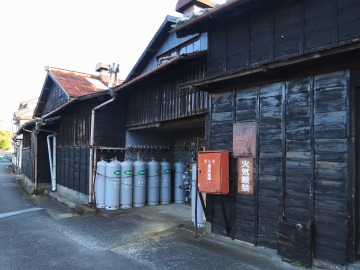 | 一帯にはたくさんの木造の工場があります。壁はどれ もが茶色や黒で独特の雰囲気、その多くは製茶工場の ようです。 |
