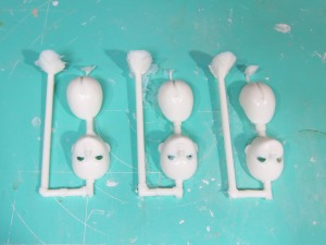 下のヘッドは左から、オビツ植毛ヘッド、これまでのオリジナルヘッド、新作ヘッドです。
