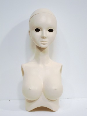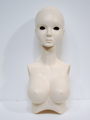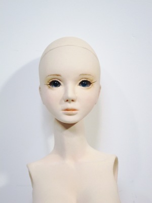とりあえず表面仕上げとメイクの段階はここまで。 あとはアイをウイッグを選びなおし、取り付けます。作例ではブロンドの ウイッグになっていますが、全体の雰囲気が和風だなって思ったので、 黒髪に変更しました。