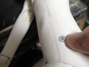 4 造形 まずはまっすぐに立たせてみます。きちんと関節が仕上がっていれば、 バランス良く立ってくれるはずです。そして次に関節を曲げてみて違和感 がないことを確かめます。 今回はまっすぐに立ってはくれたものの、若干調整が必要な部分があ りました。