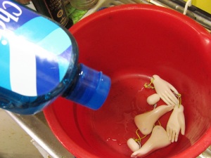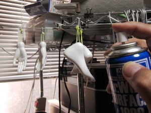 下の6つのパーツはレジンでできています。力が加わって破損しや すいパーツなので粘土から置き換えました。 ![]() まずはレジンパーツの表面処理です。レジンは親水性がないので、 前処理が必要になります。