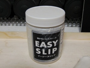 キズなどを見にくくしています。普通は固く絞った布でその毛羽立ちを押 さえるのですが、自分の場合にはここで一工夫。イージースリップ(旧名、 現在の商品名はモデリングキャスト)を水で薄めたもので表面を整えます。 イージースリップを塗布することで、粘土表面を硬く強化することができま す。