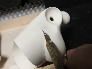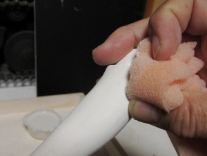 粘土を盛って、乾かして、ペーパーで磨く、最後はイージースリップ
