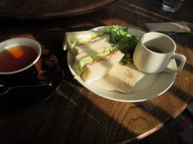 | 8:05 お腹がすいたので Pain de Mie というパン屋さんで モーニングセットをいただきました。 |