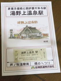 | 10:40 国道121号線を北上してゆくと、茅葺きのしぶい駅 を見つけました。 こちらは会津鉄道の湯野上温泉郷駅。駅の中に は囲炉裏なんかもあって、なんかとてもノスタルジ ック。 |