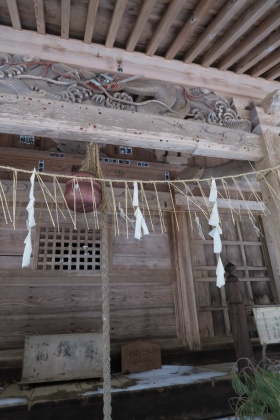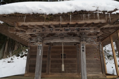 | こちらが高倉神社。 後白河天皇の第三皇子、高倉宮をお祀りした神社 ということです。 森に囲まれた丘の上にあるのですが、参道が凍り ついていてちょっと怖い。 |