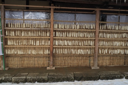 | 長い氷柱、50cm以上あります。 あちこちで見かける干した大根。 |