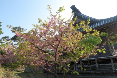 | 日当たりがよいのか早咲きの桜はもう散り始め ています。 たまたま地元の人がおられて、所蔵品などを拝 見することができました。 |