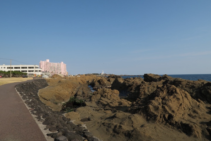 | 15:00 野島崎灯台を臨む白浜の海岸が数kmにわたって 続きます。外海なので風貌も風貌も荒々しいです。 |