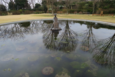 | 10:00 ヴァンジ彫刻庭園美術館(クレマチスガーデン)開館 の時間になりました。 この季節は庭の花がまだあまり咲いていないという ことで、入館料は通常よりお安い1000円でした。 (通常1200円) ここのところ若干天気に恵まれないことが多いので すが、今日も曇りでちょっと残念。 |