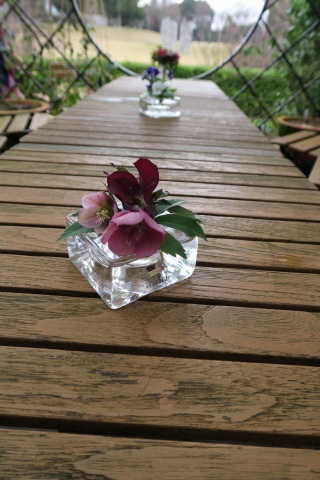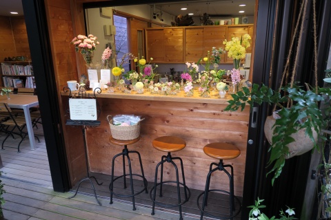 | ガーデンのはじっこにある喫茶コーナー。 切り花で演出された店内の空間がとても素敵です。 |