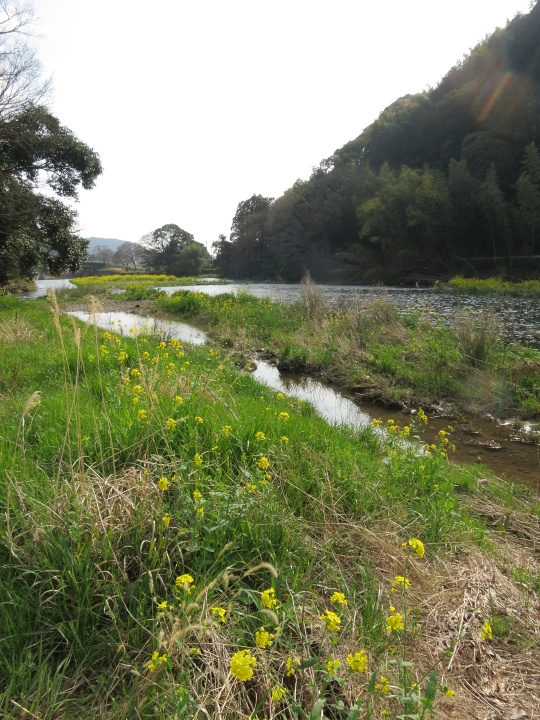 | これでひとまず旅は終わり。 後半は予定変更で駿河の国の古い町を歩くことに なりましたが、思っていたよりずっと良かったです。 昔はどこにでもあった風景なのかもしれませんが、 今も時代を経ながら営み続けられるということは、事 実として大切なことのように思います。 追伸 翌日はとても天気がよいという予報だったので、早 起きして菜の花の咲く河原に出かけました。 |
