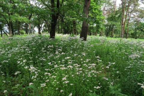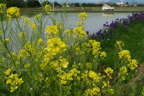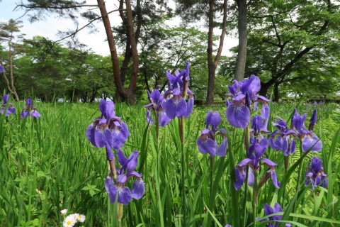 | 9:10 鳥見山公園にやってきました。ここには自然を生かし た丘と水辺があって、とても心地よいです。 アヤメやハルジオンが見頃です。 |