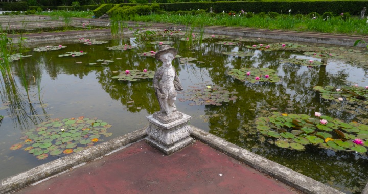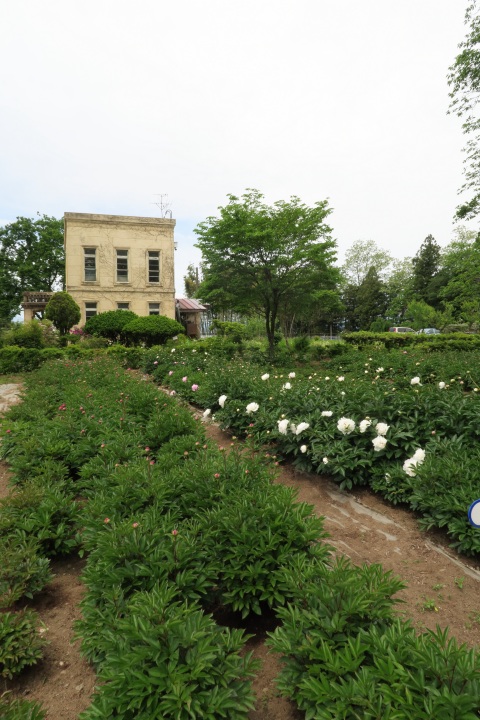 | 道を渡るとそこは庭園スペース。 まず最初に目に留まるのはローズガーデン。でも満開 まではあとちょっとでした。 |