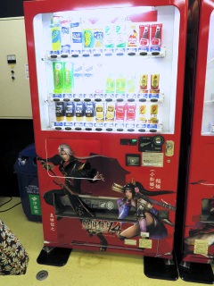 | 小松姫や真田信之道のプリントされた自動販売機。 商品を探すと・・・・、ありました、限定品のコーヒー。 (ですが中身はふつうのコーヒーでした) |