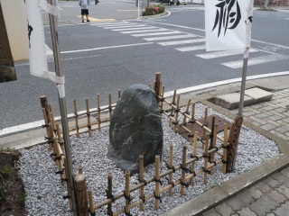 | 9:30 真田丸展の会場から出てすぐのところにある天王石。 神社の跡地の印だそうで、真田信之がここに置いたと 伝えられています。 |