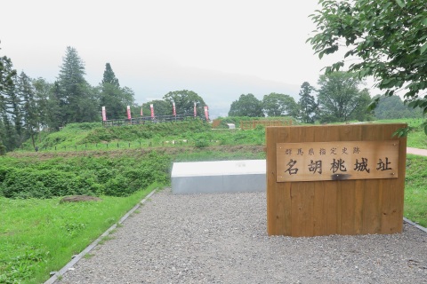 | 11:15 まだ昼前なので、今度は名胡桃城址に行ってみるこ とにしました。沼田のちょっと北、みなかみ町に向かい ます。 名胡桃城は戦国末期、沼田攻略の足がかりとして真 田昌幸によって築城されました。 その後、豊臣秀吉の裁定で沼田城が北条氏に移譲 される際に、裁定を破って北条氏は名胡桃城まで占拠、 これが北条討伐のきっかけになったのはとても有名で す。 |