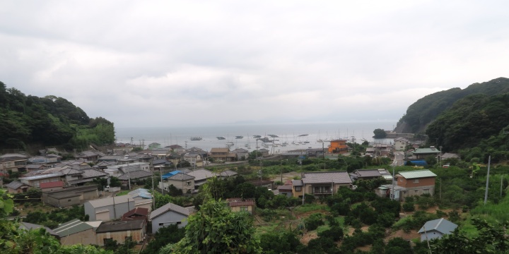 | 7:30 駿河湾の奥まったところに最初の目的地、西浦古字 があります。このあたりに点在する古くからの漁村のう ちの一つです。 鉄道の通っている伊豆半島の東側に比べれば、この あたりの交通の便はお世辞にも良くないです。公共の 交通機関はバスのみ、それも沼津方面に朝バスが1 本帰りは夕方に1本という感じです。 |