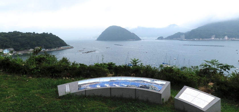 | 8:50 典型的なリアス式海岸が続きます。 マリンスポットの一つ、淡島が見えてきました。この 淡島のすぐそばに長浜城跡があります。 |