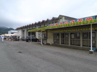 | 9:50 少しすすむと、このあたりではいちばん開けた内浦 地区があります。 ようやく見つけたコンビニでアイス買いました。 右の画像は内浦漁港の直売所。 アジの干物(1枚100円)と名産のワサビ(400円)を買 いました。 |