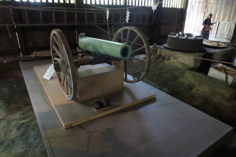 | こちらは24ポンドカノン砲。 溶かされた鉄は、こういった大砲に加工されました。 幕末の時代、ここは間違いなく時代の最先端をいって いました。日本の重工業の起源がここにあったわけで す。 |