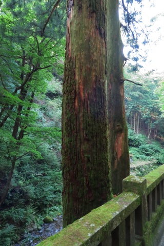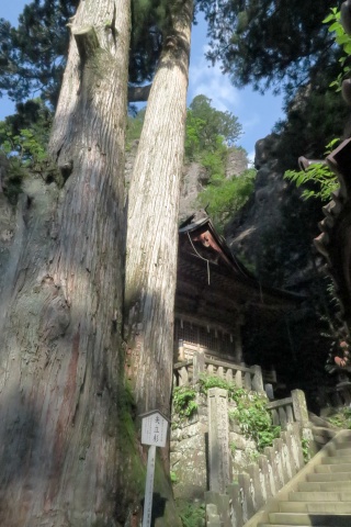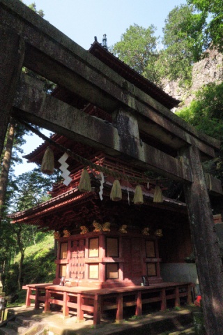 7:50 おもいっきり早く家を出たので、8:00前に榛名神社に 到着しました。 榛名神社の歴史は古く、創建は586年、すでに1400 年の歴史があります。 さすがにこの時刻にここを訪れる人は少なく、しかも 涼しいです。やったね! お人形を手にしたまま参道 をすすみます。 |
